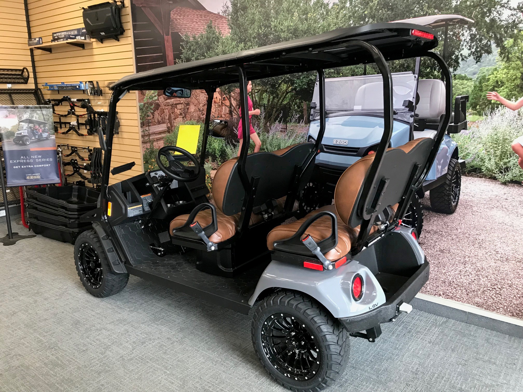 This Slate Gray E-Z-Go Liberty is the street-legal version – don’t get fooled by dealers offering a Liberty for a much lower price – it is probably not street-legal and has the short-range lithium battery. This Liberty has the following features:
