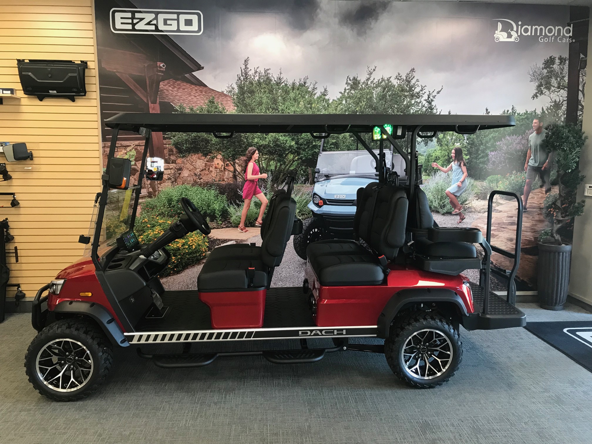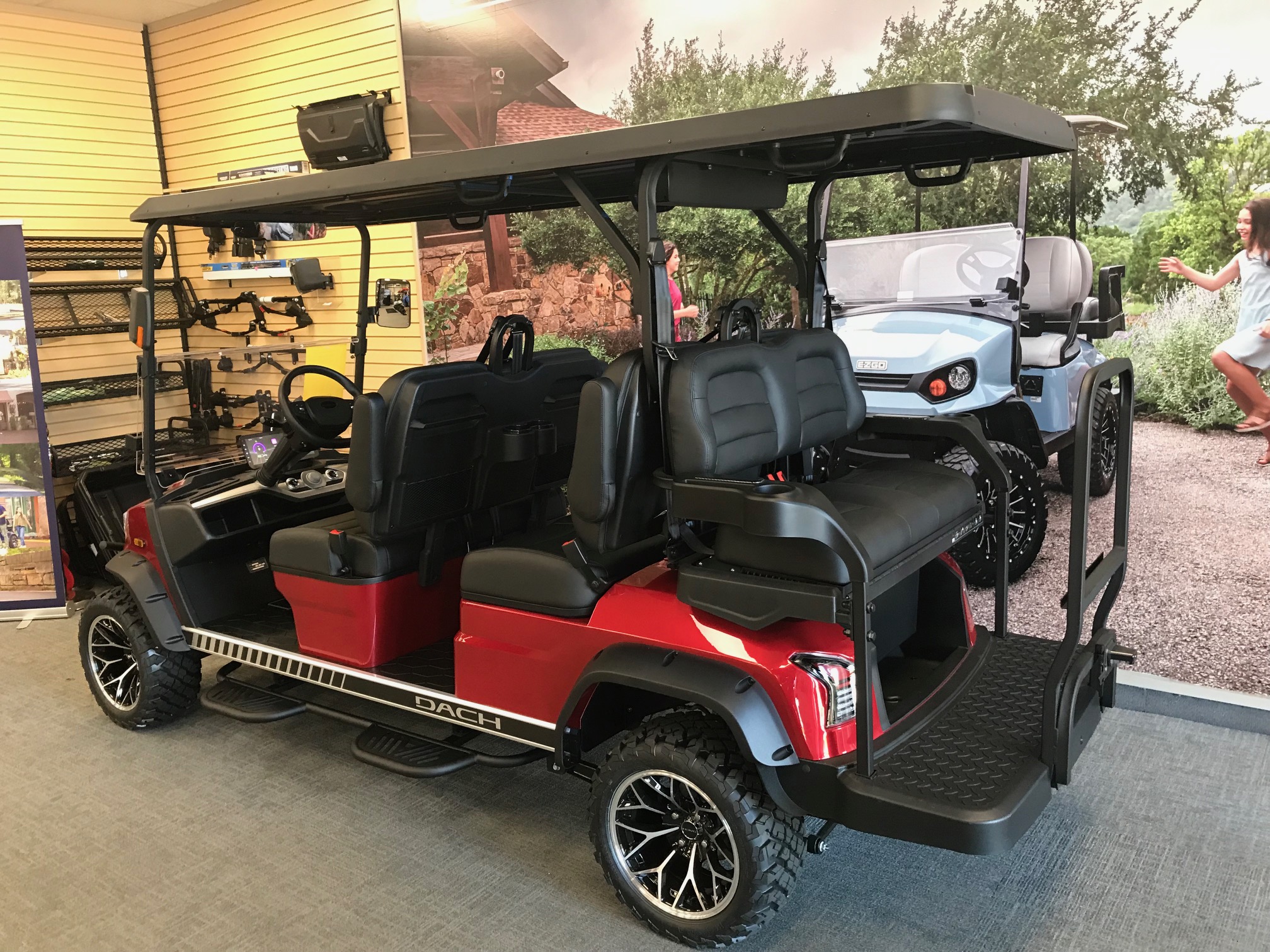 This is the newest 6-passenger, street-legal golf car on the market – and probably soon to be one of the hottest models for several reasons.  Dach has automotive-quality features and strength from the frame and up.