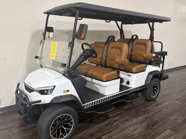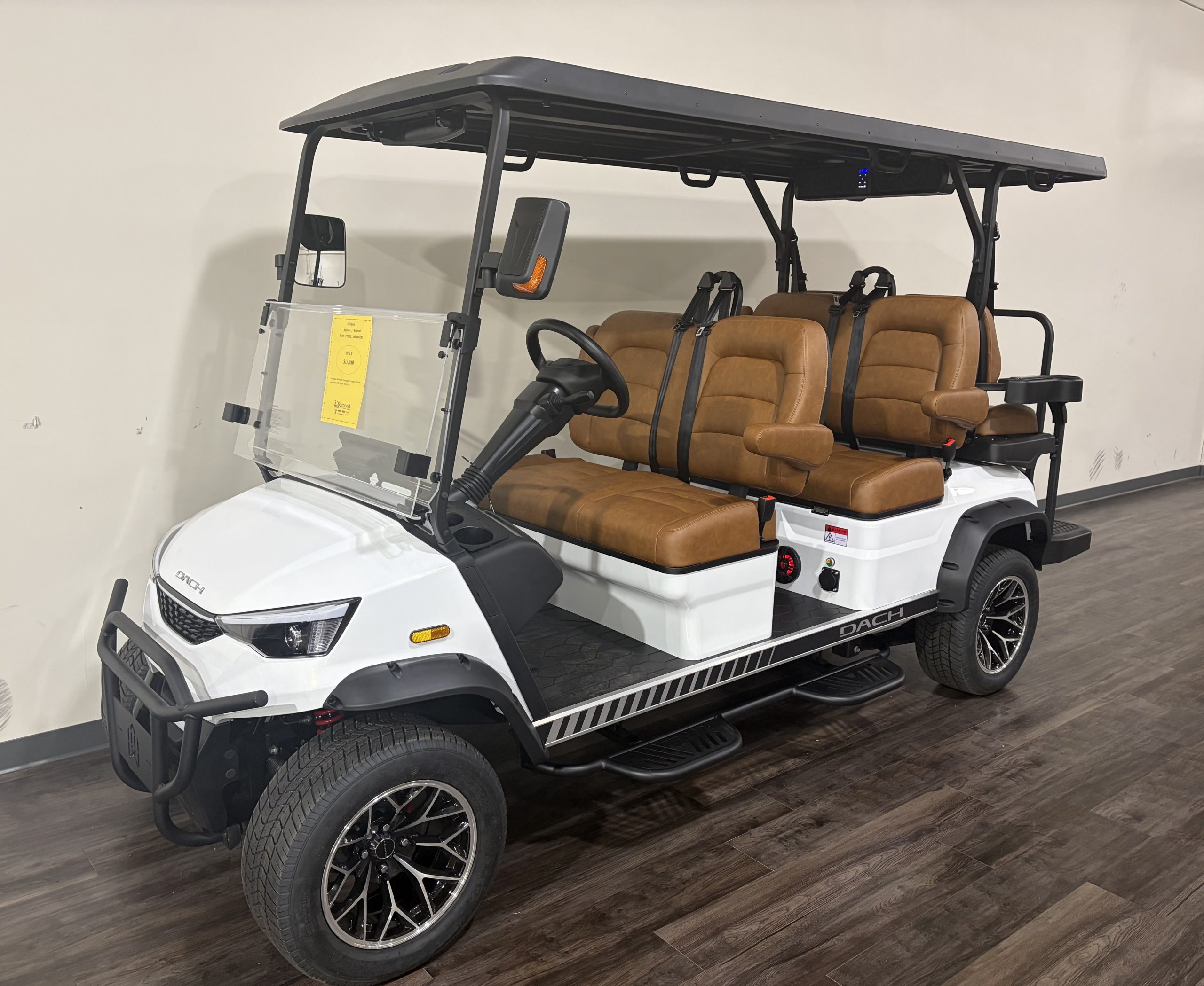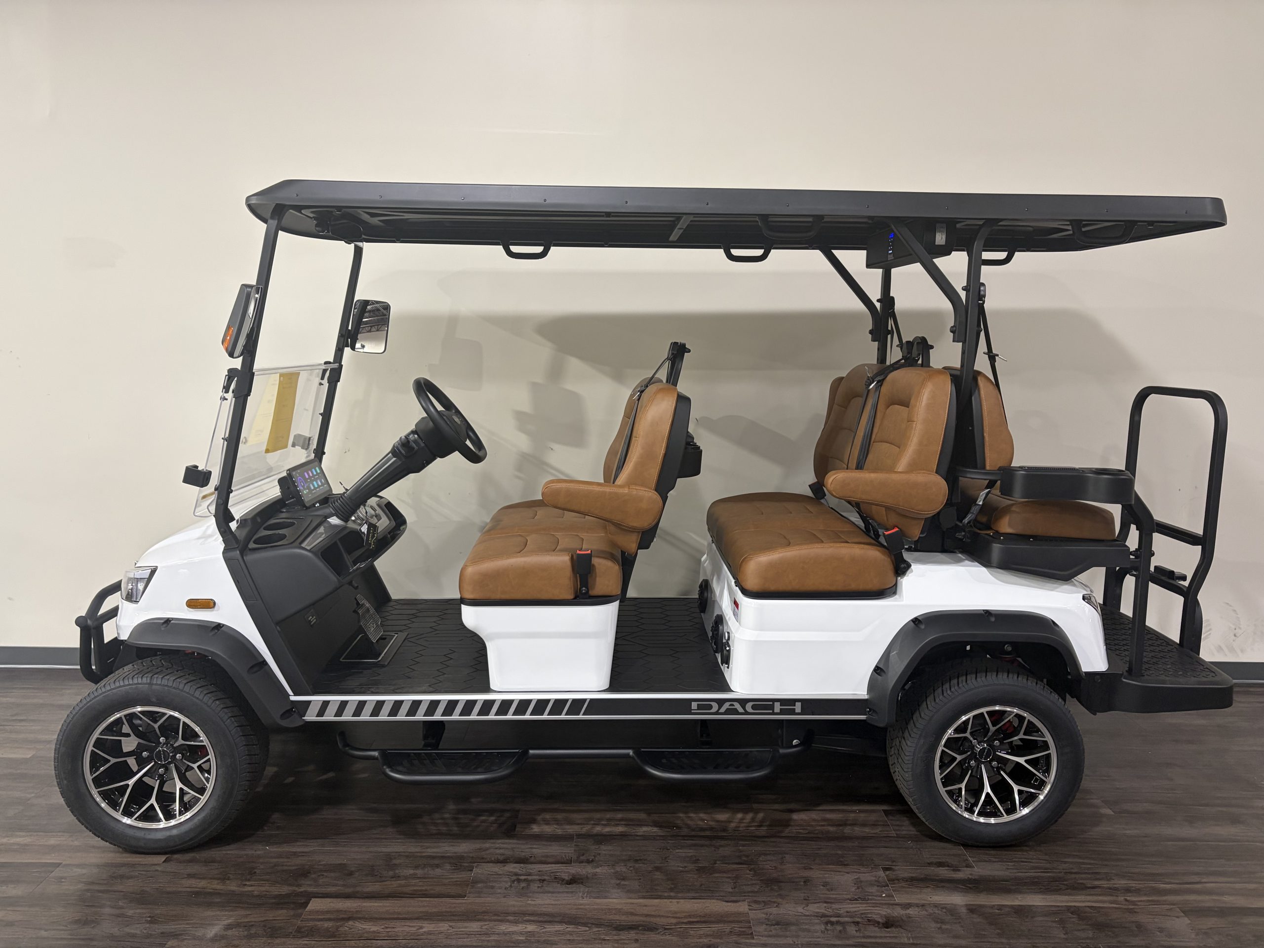 This is the newest 6-passenger, street-legal golf car on the market – and probably soon to be one of the hottest models for several reasons.  Dach has automotive-quality features and strength from the frame and up.