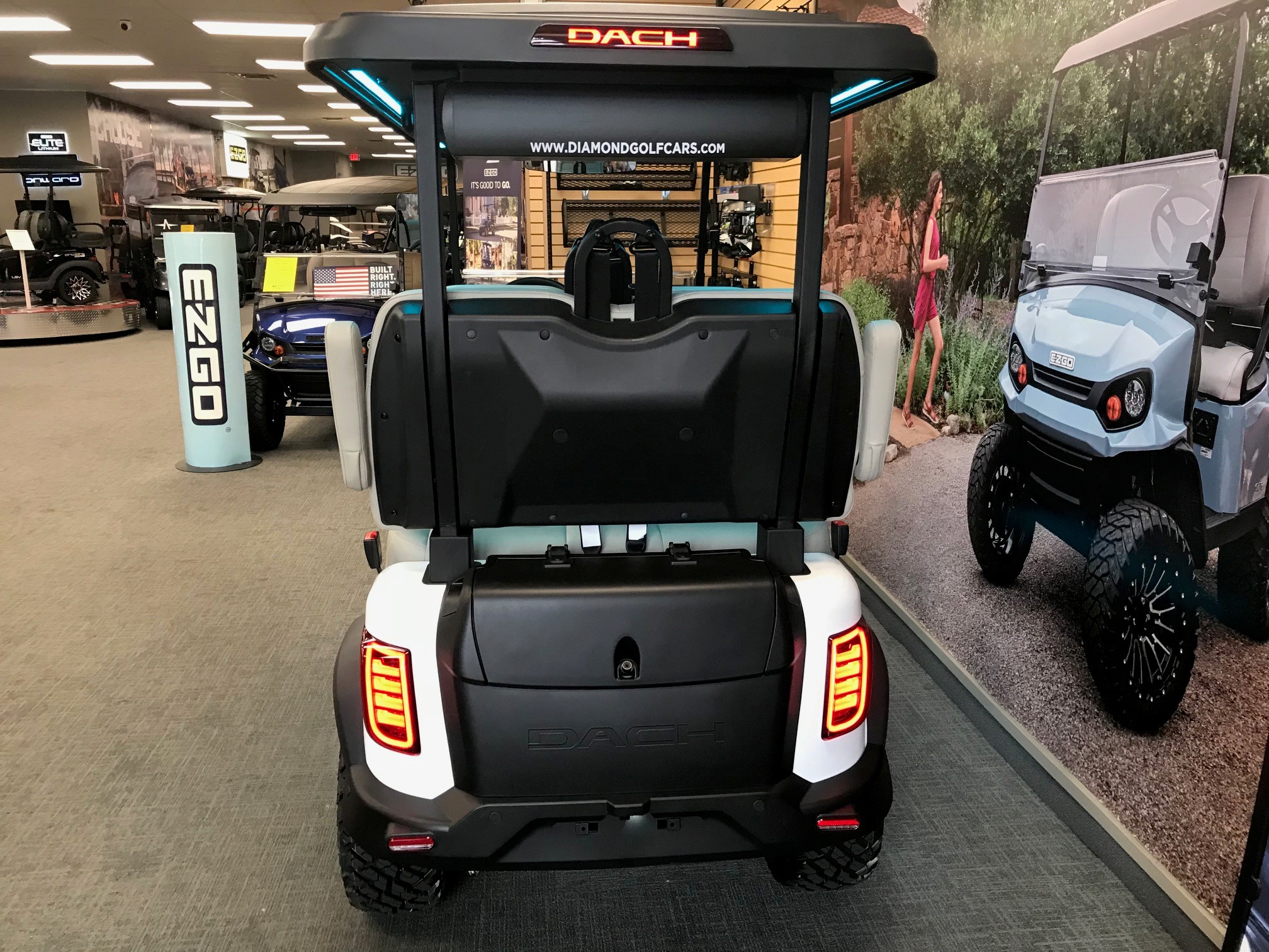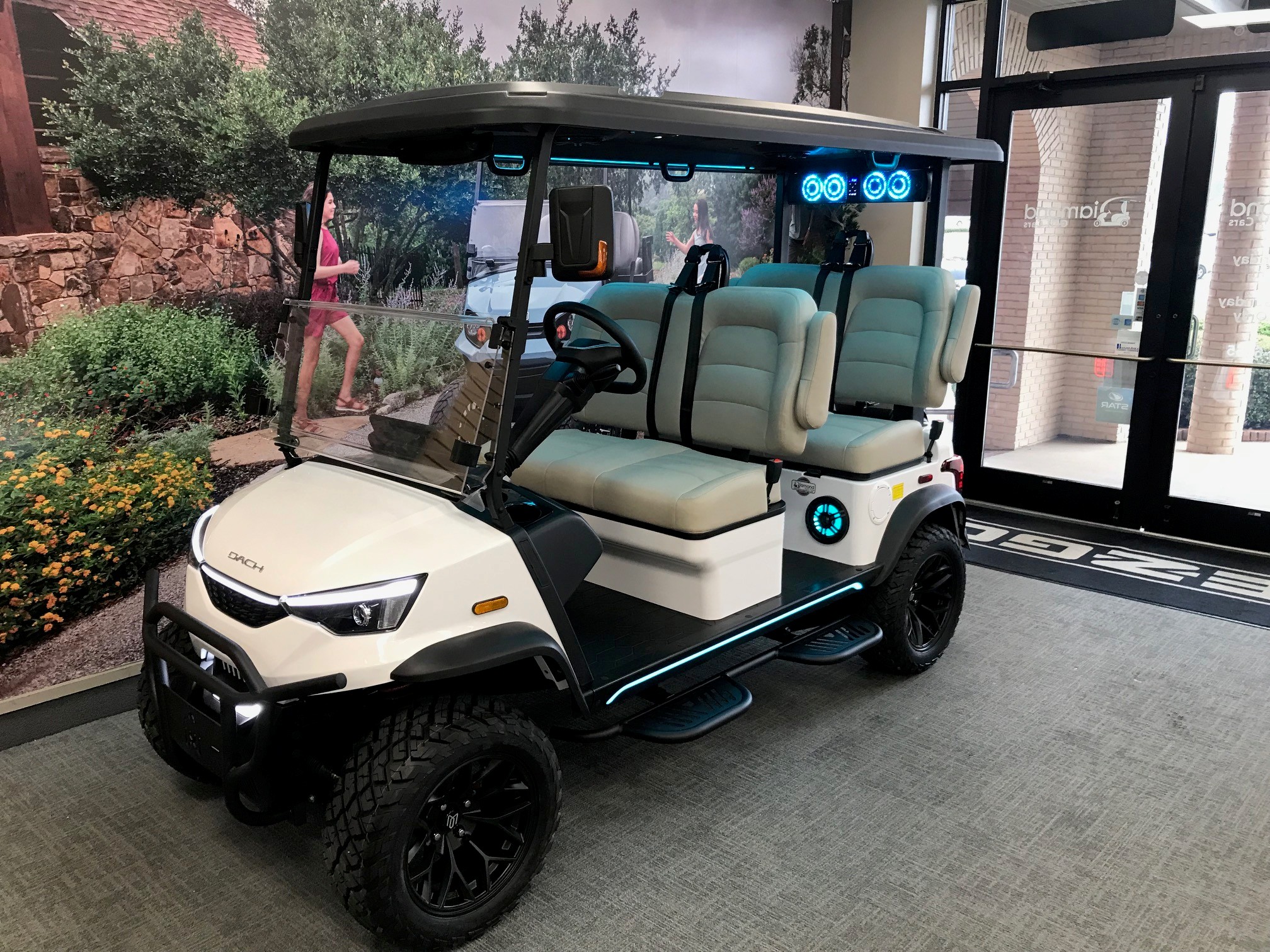 This is the newest 4-forward street-legal golf car on the market – and probably soon to be one of the hottest models for several reasons. Dach has automotive-quality features and strength from the frame and up.